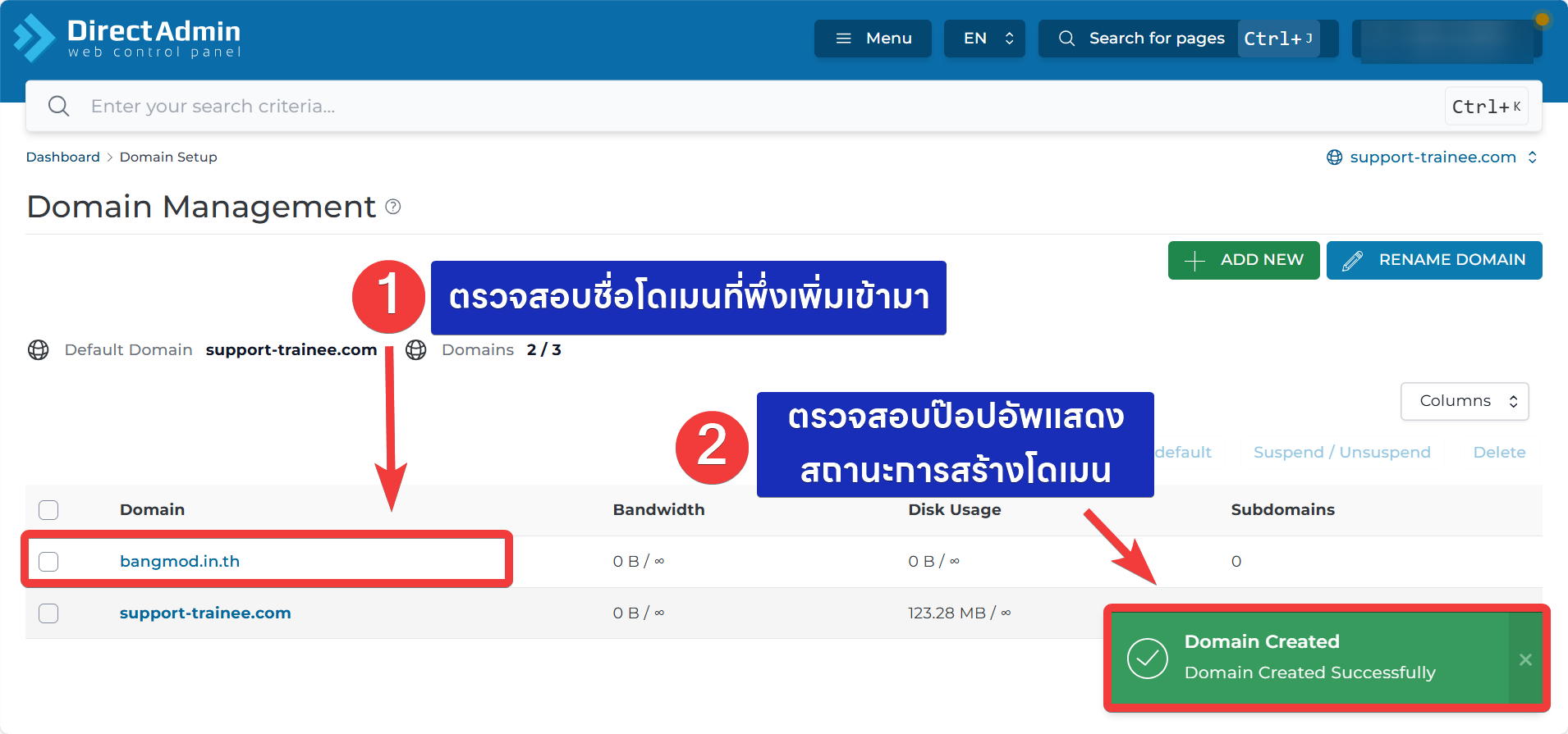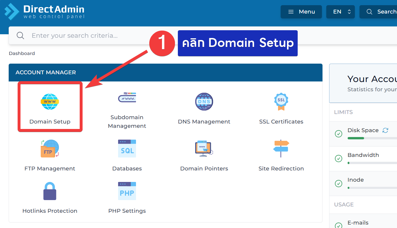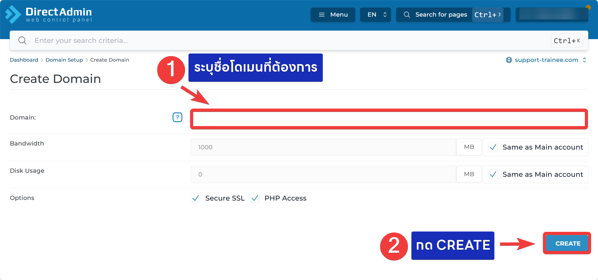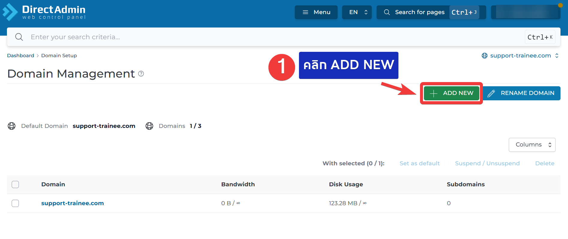 วิธีการเพิ่ม Subdomain ผ่าน DirectAdmin Control Panel
