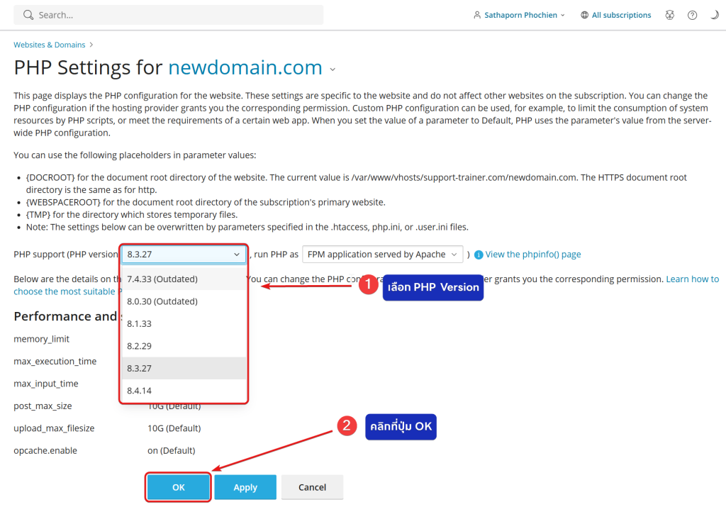 วิธีการเปลี่ยน PHP Version บน Plesk