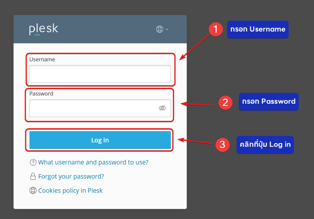 1. Login เข้าสู่ระบบของ Control Panel Plesk