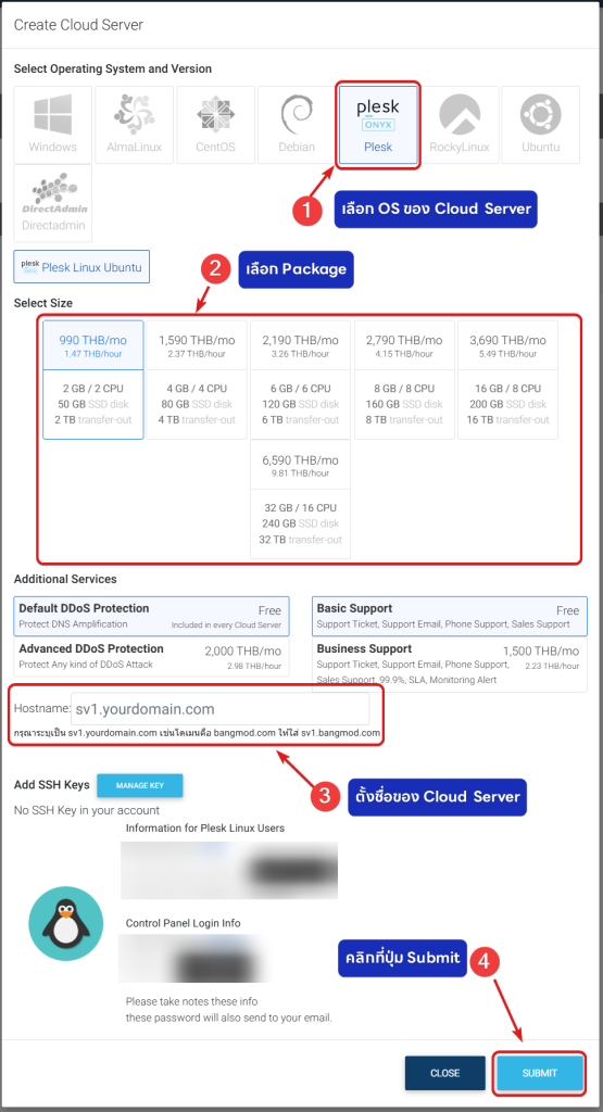 1. เลือก OS ของ Manage Cloud Server เป็น Plesk
