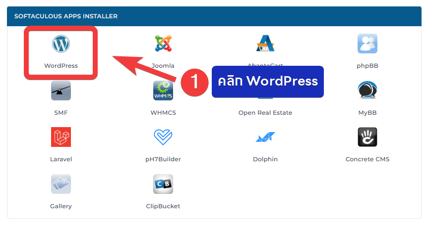 2. ในหัวข้อ Softaculous Apps Installer เลือก WordPress