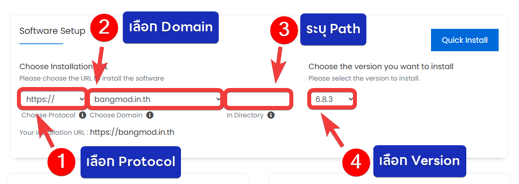 - เลือก Domain ที่ต้องการติดตั้ง WordPress