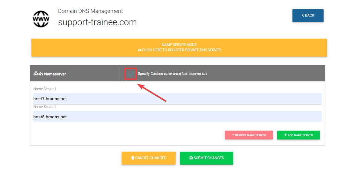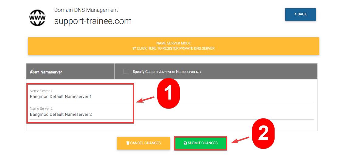หลังจากกดปุ่ม บันทึก การเปลี่ยนแปลง Nameserver จะเริ่มทำงาน