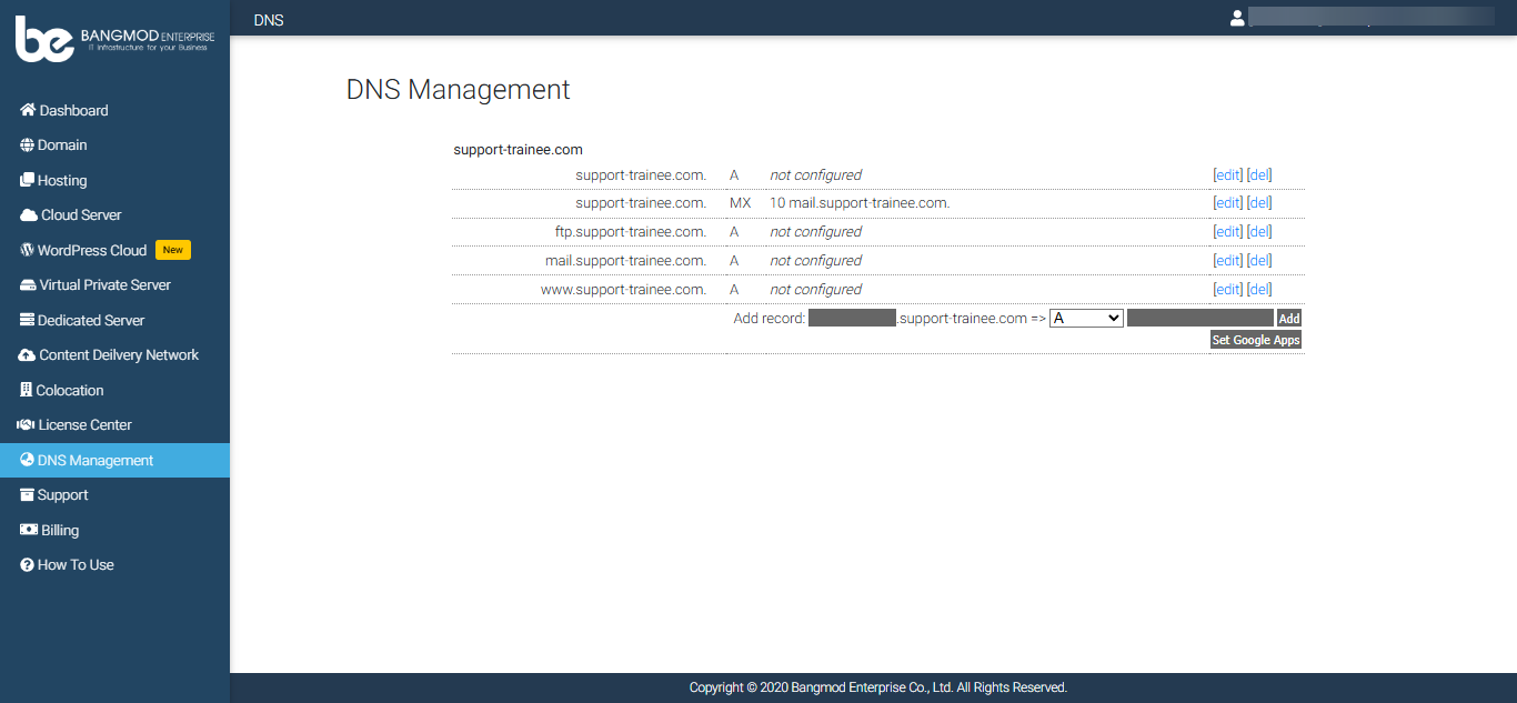 ให้ไปที่หน้าการจัดการ DNS โดยให้ทำตามขั้นตอนดังนี้