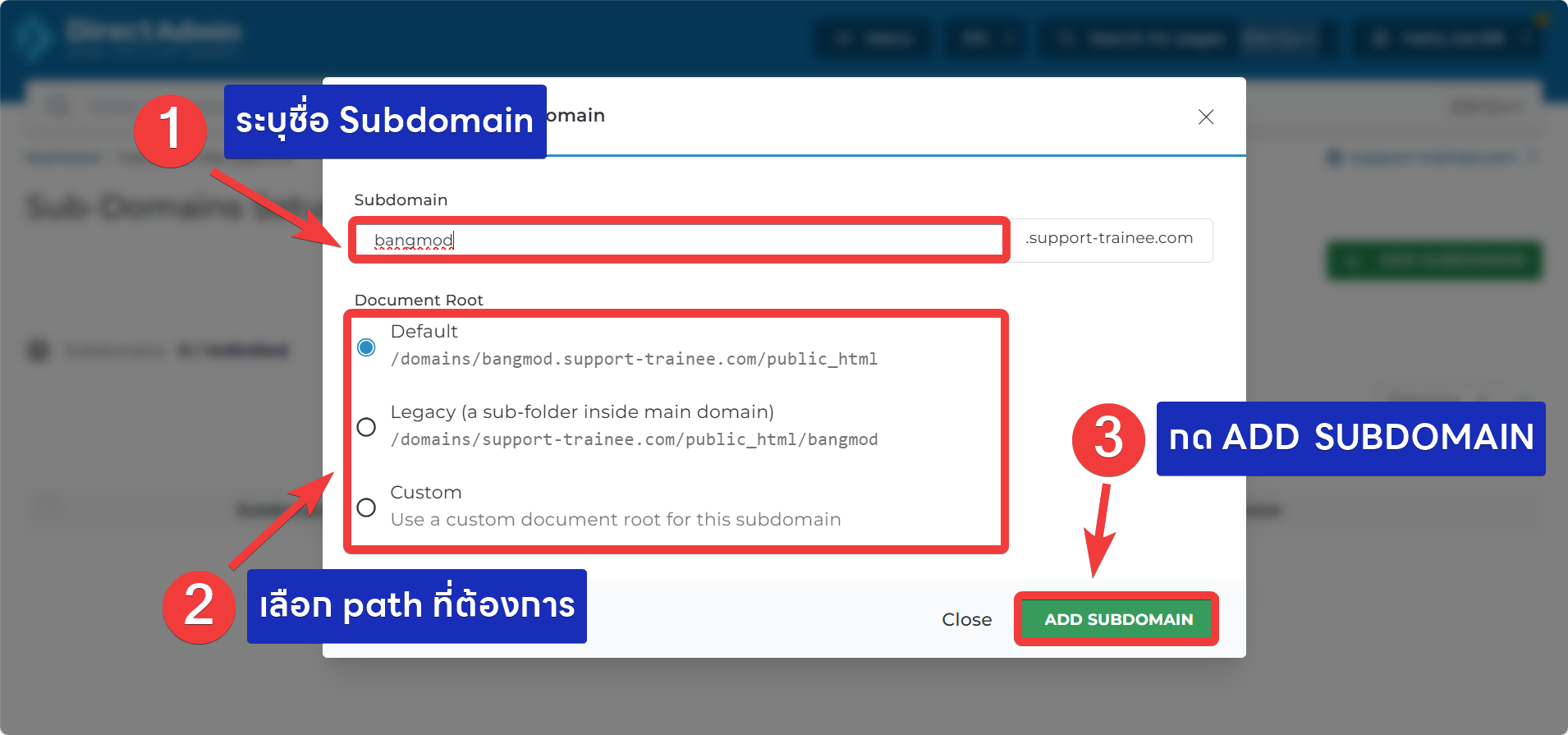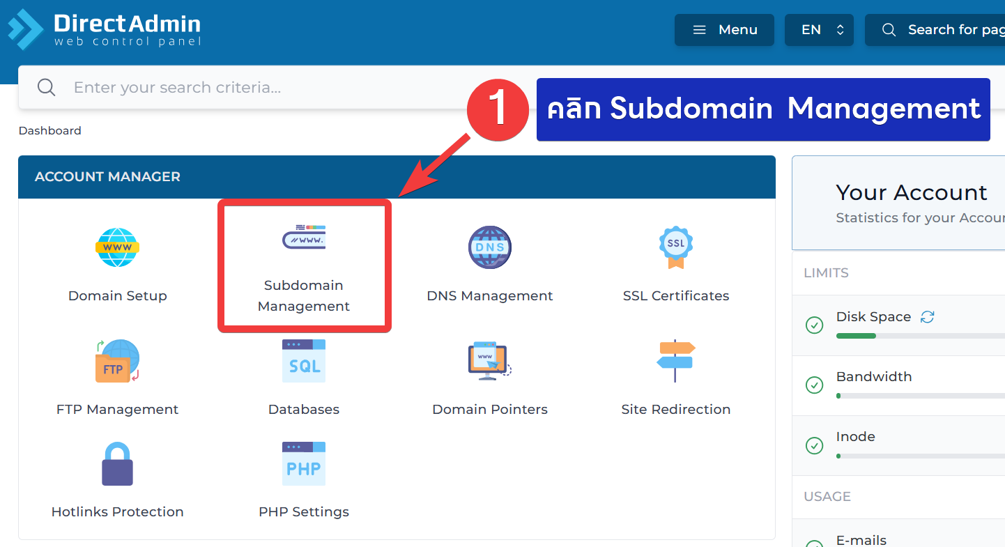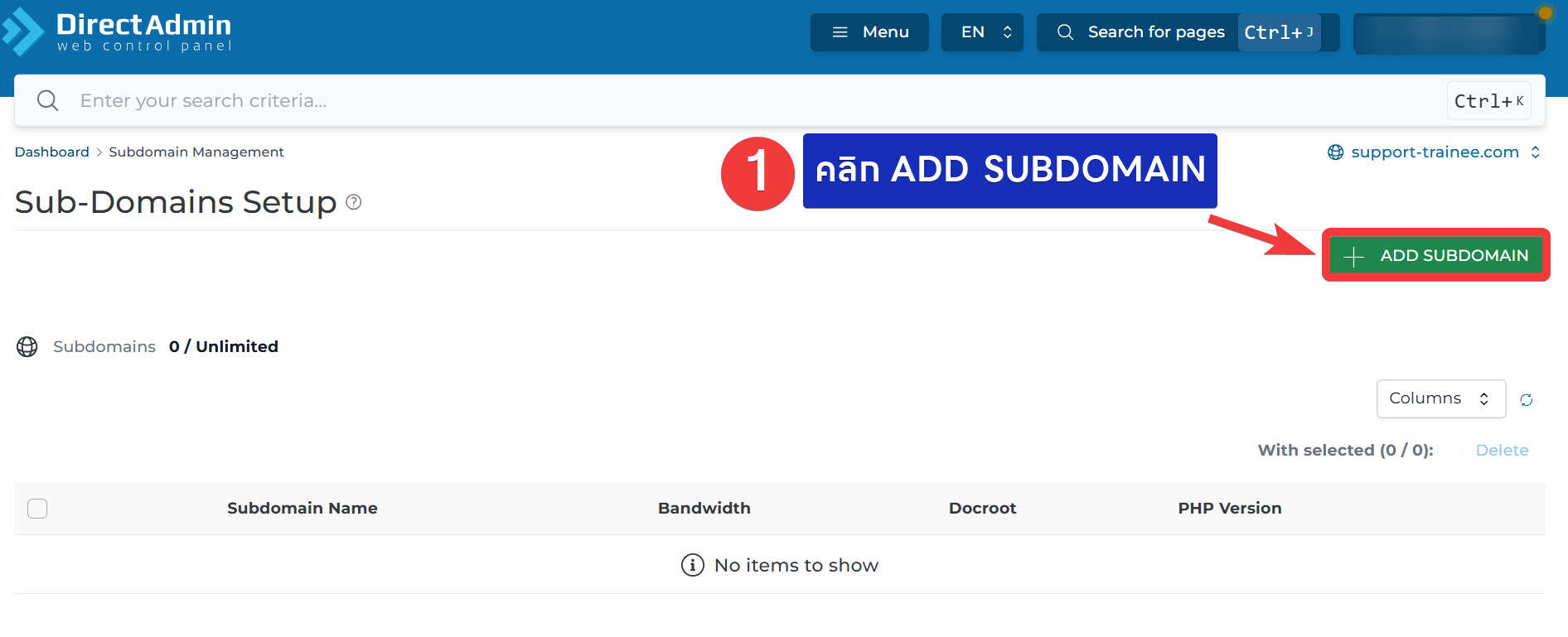 วิธีการเพิ่ม Domain ผ่าน DirectAdmin Control Panel